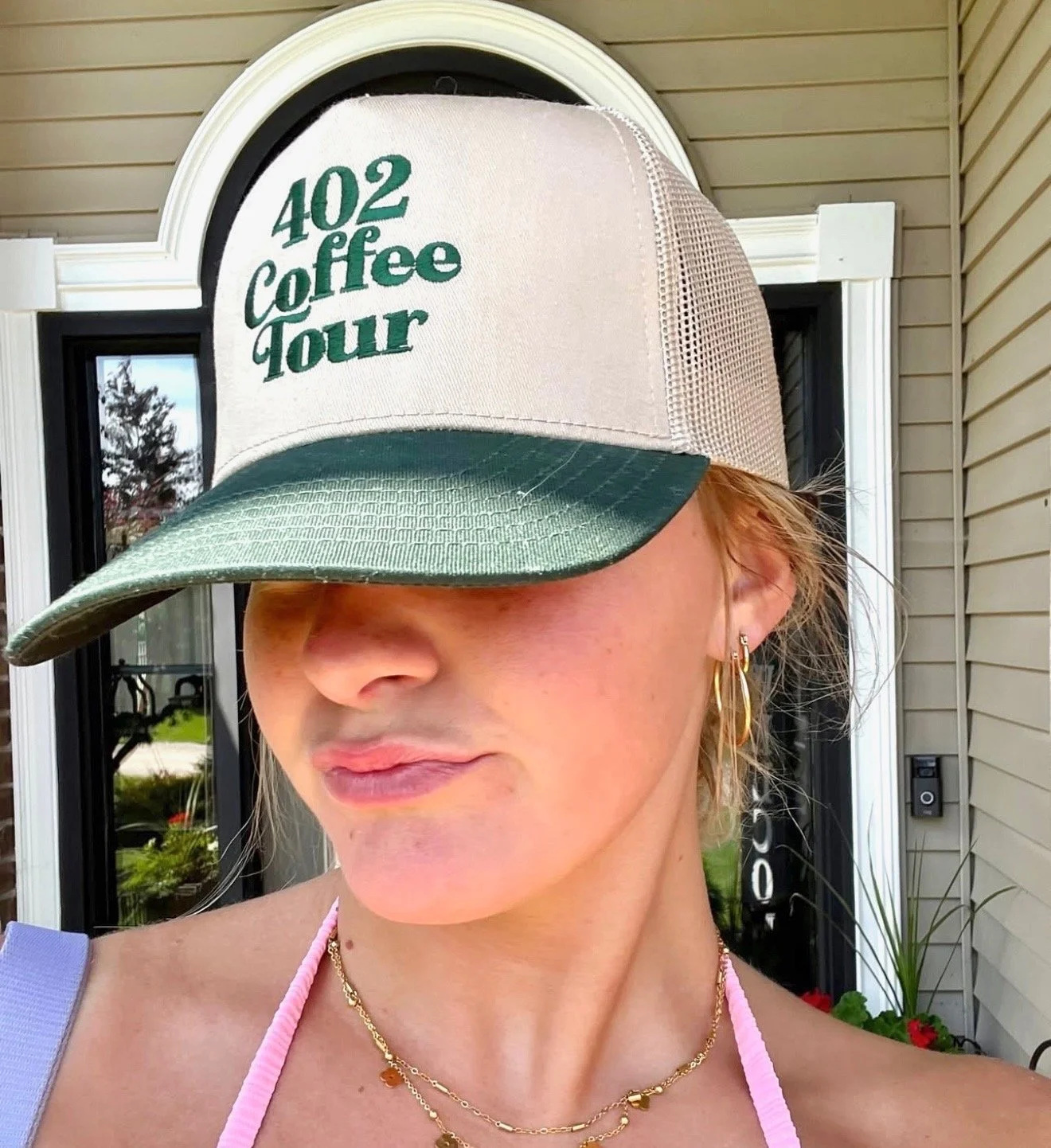 402 Coffee Tour is a social review group based in Omaha that visits and rates local coffee shops on taste, atmosphere, and customer service. I designed custom trucker hats and tote bags for the group, blending laid-back style with a love for all things coffee. To bring the brand to life, I curated fake social media posts that captured a bright, fun aesthetic, aligning with the community-driven spirit of the tour. I also photographed the team and used those images to design bold, playful posters, combining candid photography with dynamic editing to create marketing materials full of energy and personality.